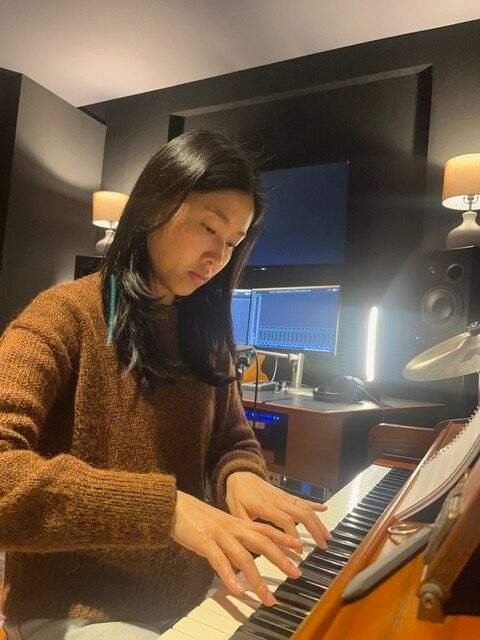 Throughout this entire film, the music provides a deeper look into the internal feelings and experiences of the trio. Low, warm chords from acoustic guitars accompanied by a banjo and plucked string instruments augment Nellie’s stories of the love her parents gave her in her upbringing. A rhythmic pair of scissors snip in-time to the beat, incorporating textile imagery within the music. At various points in the film, sonic “tags” like a harmonica, a ukulele, and a gramophone-esque piano provide a transportive quality which takes the audience into the past alongside footage of black and white explorers, space shuttles, and other human endeavors in recent history that pushed the envelope. Both the triumphs and the darker sides of humanity are on display and the score presents both emotional sides of American history, helping the viewers appreciate the nuance and complications of it. One might expect such grand tales to find a counterbalance in grand scale orchestras but composer Ho-Ling Tang took a different approach. She explains, “I opted to avoid large ensembles altogether, using a single violin, one cello, one piano, one flute, and single plucked string instruments that included guitar, banjo and ukulele. Choosing the right sound palette greatly influences the emotional tone of the project, and I needed to find a set of instruments that expressed intimacy, warmth, and humanity. It just felt like we were in the room with these people and these musicians, and that kind of intimacy gave us a window into those peoples’ stories in a way that something grander wouldn’t have. This took some time to establish and get right, which was essential because it would have implications for the tone of the entire film.”